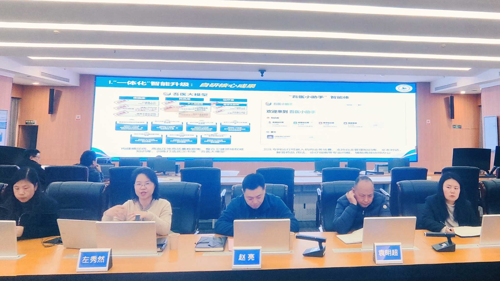 交流中,左秀然副主任详细介绍了武汉在区域卫生健康信息化领域的建设成果、创新路径与实践经验。中心相关科室代表现场演示了武汉区域人口健康信息平台、健康武汉新版小程序、人工智能医疗应用共享服务平台等核心信息化载体,直观展现了武汉以数智化赋能医疗服务提质增效的实践成效。随后,双方围绕区域卫生健康信息平台搭建、基层医疗信息化赋能、AI 医疗技术落地应用等关键议题展开深入研讨与经验互鉴。与会人员各抒己见、充分交流,一致达成共识,将建立常态化交流合作机制。